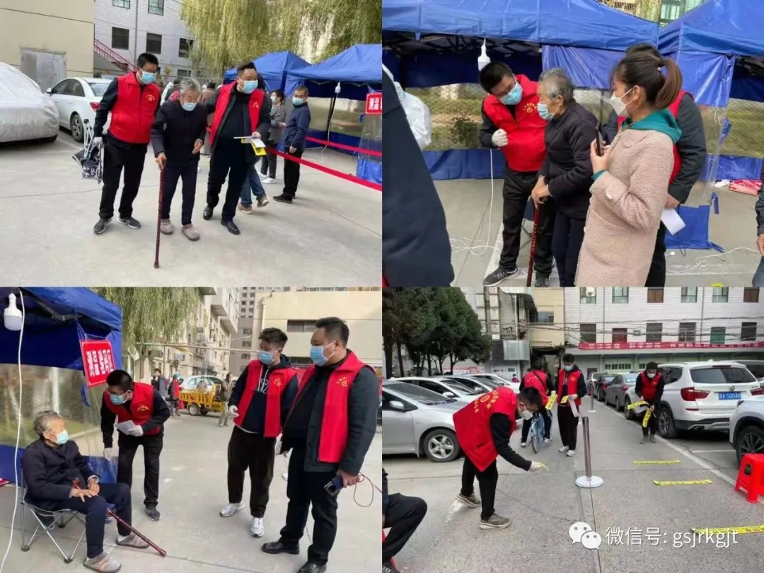 由于各组服务的社区周边居民众多、人口密集,各组组长带领自己的小组成员走街串巷,挨家挨户发放排队号牌,有序组织群众前往固定检测点进行核酸检测。耐心的解释、奔走的身影,构成了这个深秋最温暖的画面。
