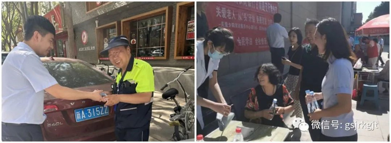 活动现场,甘肃金控集团志愿服务党员协助卫生服务中心、眼科医院及社区工作人员向社区居民宣传活动、维持秩序,为活动工作人员、社区街道社区的环卫工人、交警等户外工作人员在炎炎夏日送去清凉的矿泉水,向社区老人开展防范电信诈骗宣传,提醒老人如何防止自己被骗,保护自己和家人的财产安全。